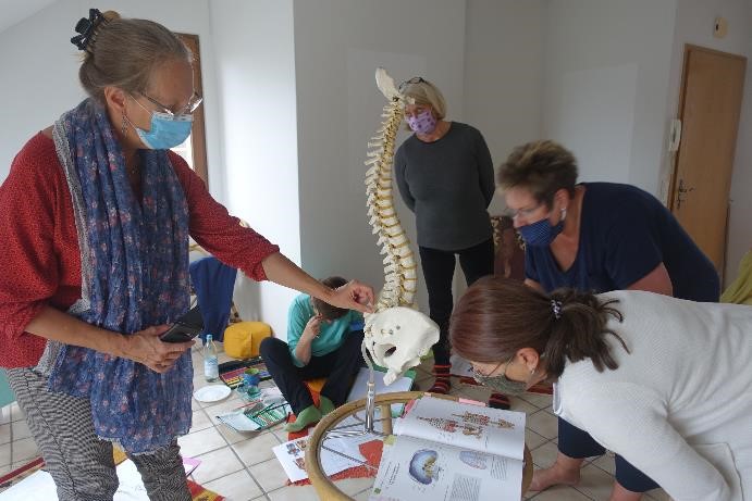 Ein Kennenlernen der Anatomie gehörte ebenso zum Wochenende dazu wie eine erste heilende Partnerarbeit mit der Wirbelsäule. Und die meisten waren erstaunt, wie kurzweilig Anatomie, Psychologie, Energiearbeit und Therapie sein können!
